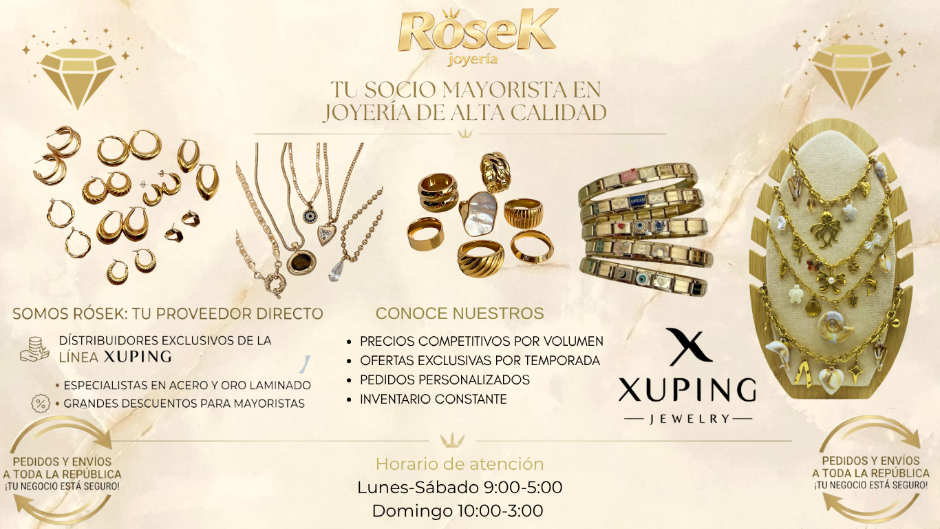 Somos proveedores oficiales de la reconocida marca Xuping, ofreciendo joyería de alta calidad, con diseños elegantes que marcan tendencia