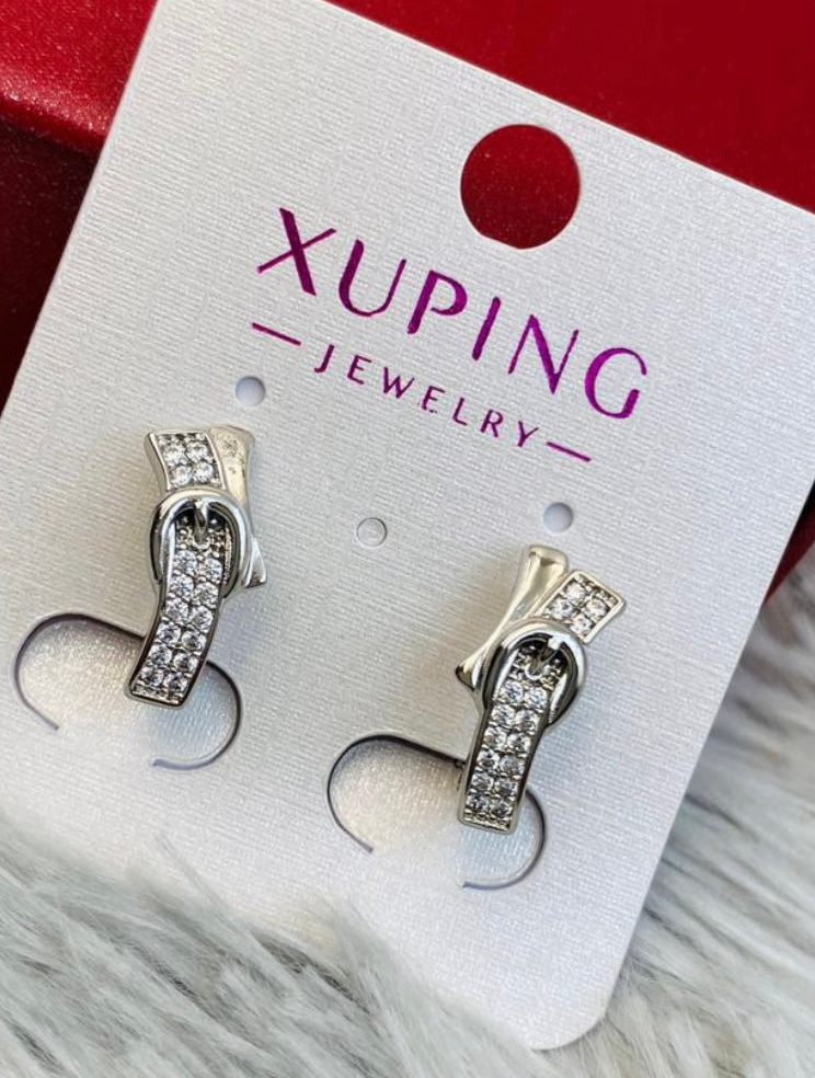 Este hermoso arete plateado con una figura de hebilla de cinturón, está hecho de rodio y brilla con elegancia. Da un toque sofisticado y moderno a cualquier atuendo. Con su estilo único y materiales de alta calidad, es un accesorio imprescindible para cualquier amante de la moda.