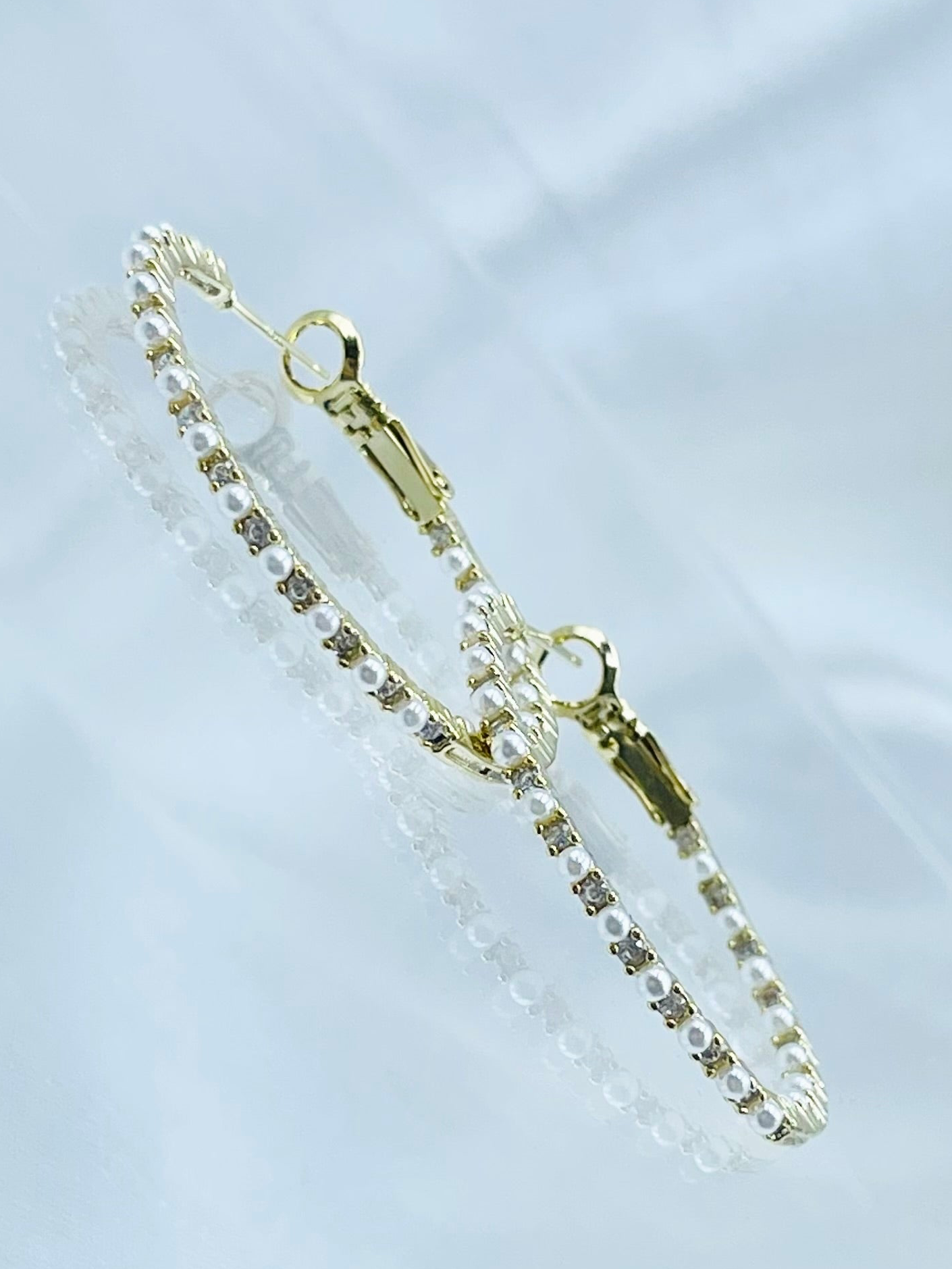 La Arracada Dorada Rosek es un accesorio imprescindible para cualquier ocasión. Con su diseño en dorado y adornada con brillos y perlas, esta arracada Rosek agregará un toque de elegancia y sofisticación a tu look. Su diseño único te hará destacar entre la multitud y su calidad duradera te asegura un uso prolongado. ¡Haz una declaración de estilo con la Arracada Dorada Rosek!