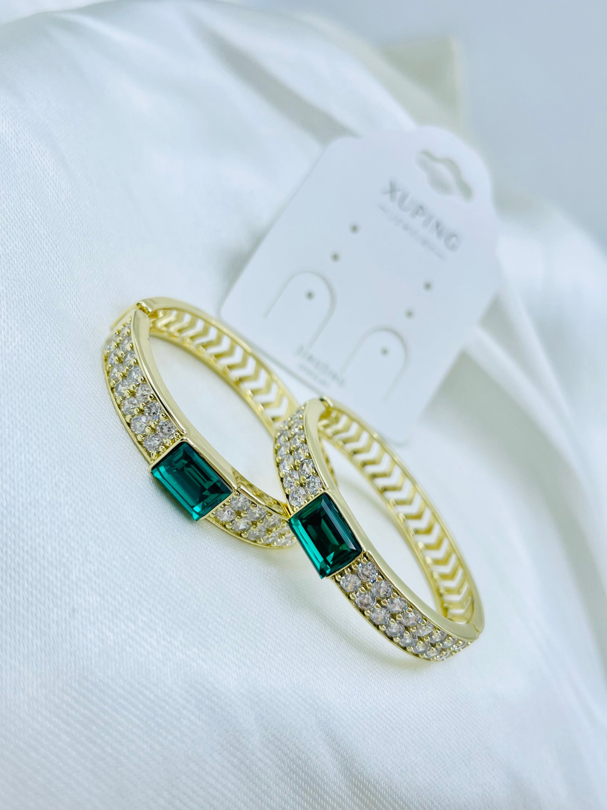 La Arracada Xuping Jingjing cuenta con brillos en toda su superficie y un cristal Swarovski verde esmeralda, brindando un toque de elegancia y sofisticación a tu look. Con un diseño único y detallado, esta arracada es perfecta para cualquier ocasión, haciéndote destacar con un estilo impecable. ¡Encuentra tu joya perfecta con Arracada Xuping Jingjing!
