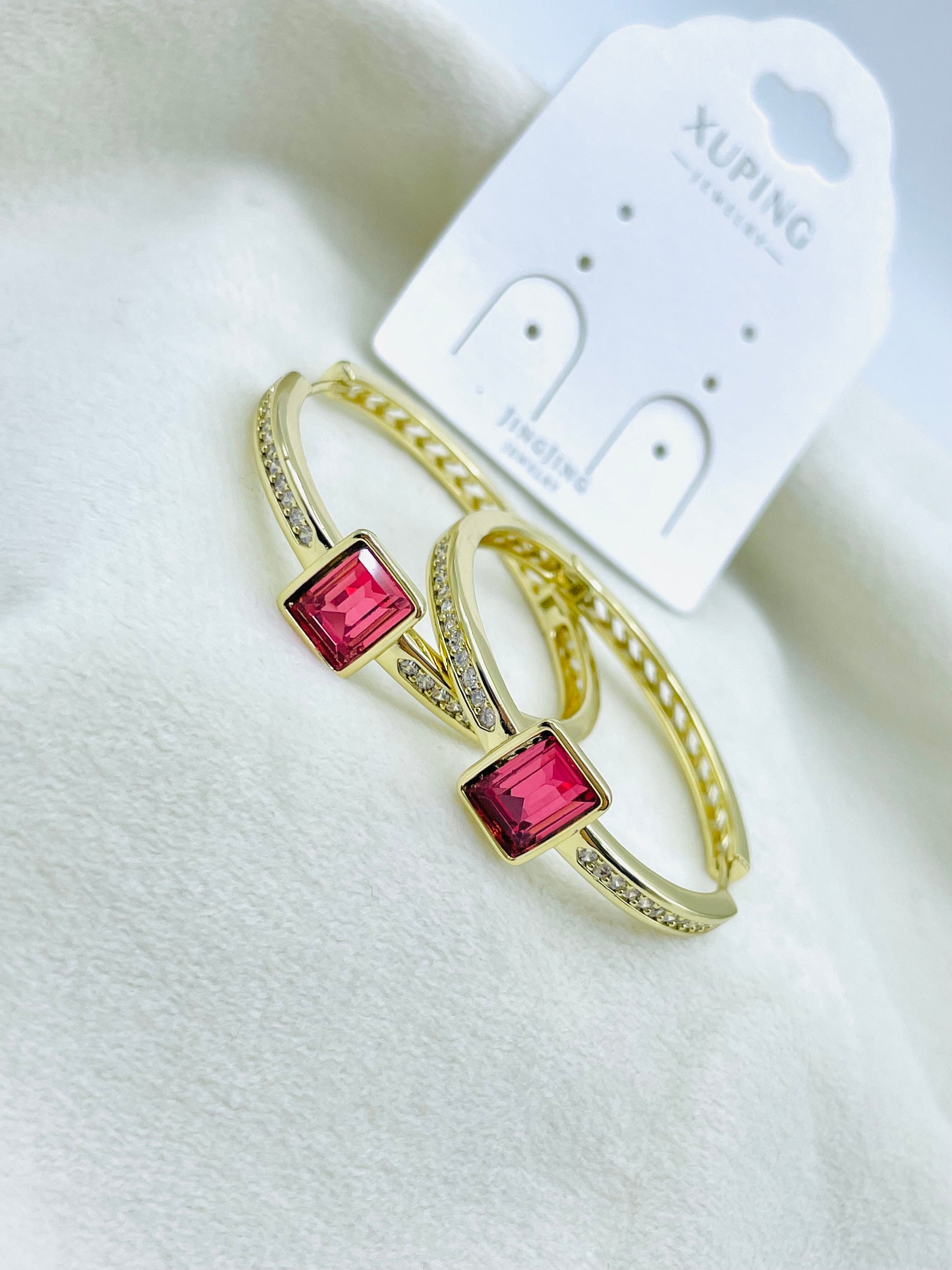 Esta Arracada Xuping Jingjing está hecha de un dorado brillante y cristal Swarovski rosado, lo que le da un toque elegante y llamativo. Perfecta para cualquier ocasión, esta arracada te hará brillar con estilo y sofisticación. Disfruta de un accesorio de alta calidad que nunca pasará de moda.