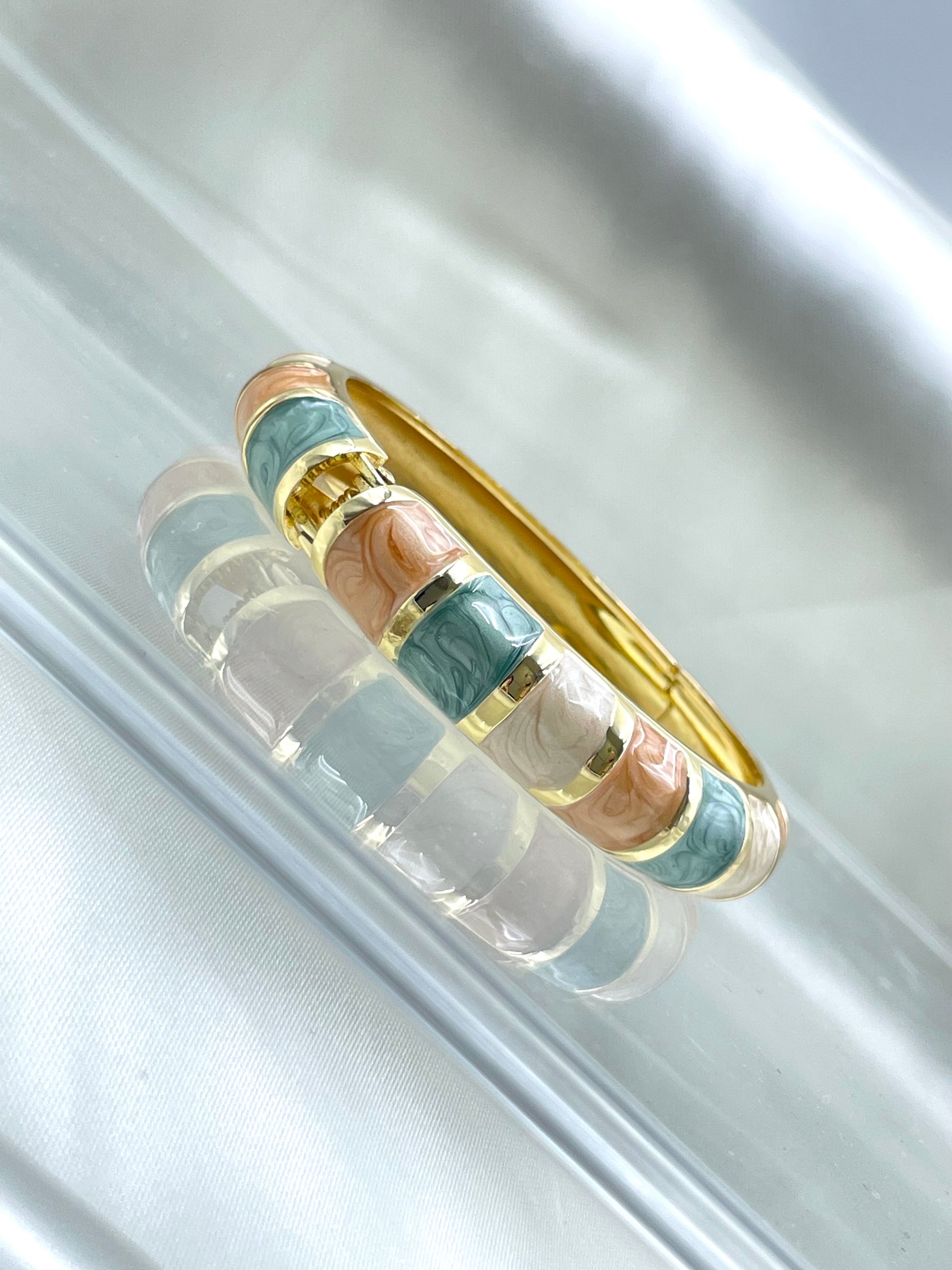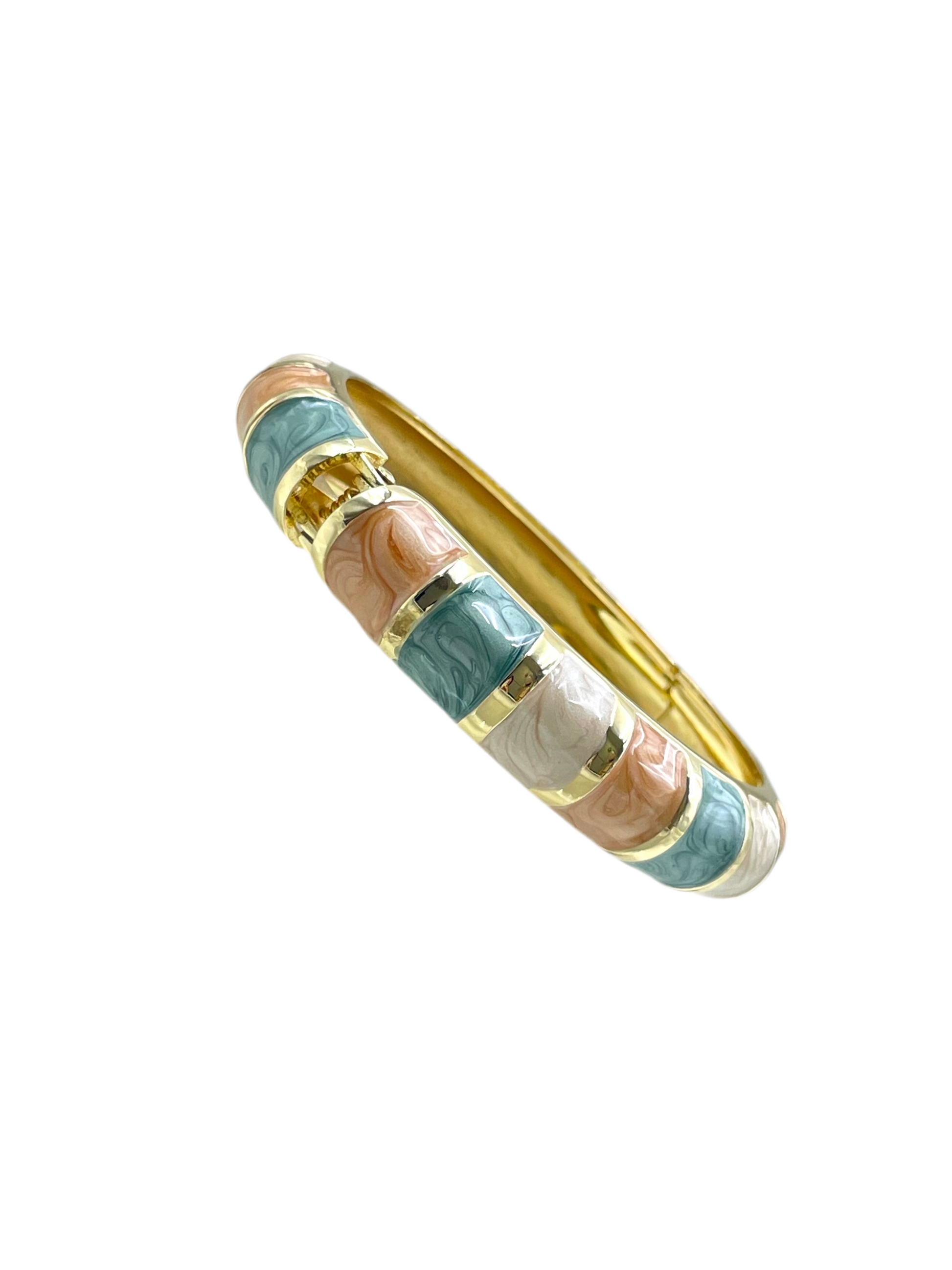 Este Brazalete colorido está hecho de acero inoxidable de alta calidad. Su colorida combinación de verde, café y beige lo hace un accesorio único y versátil para cualquier atuendo. Además, su red de diseño le da un toque elegante y moderno. Obtén estilo y durabilidad con este brazalete.