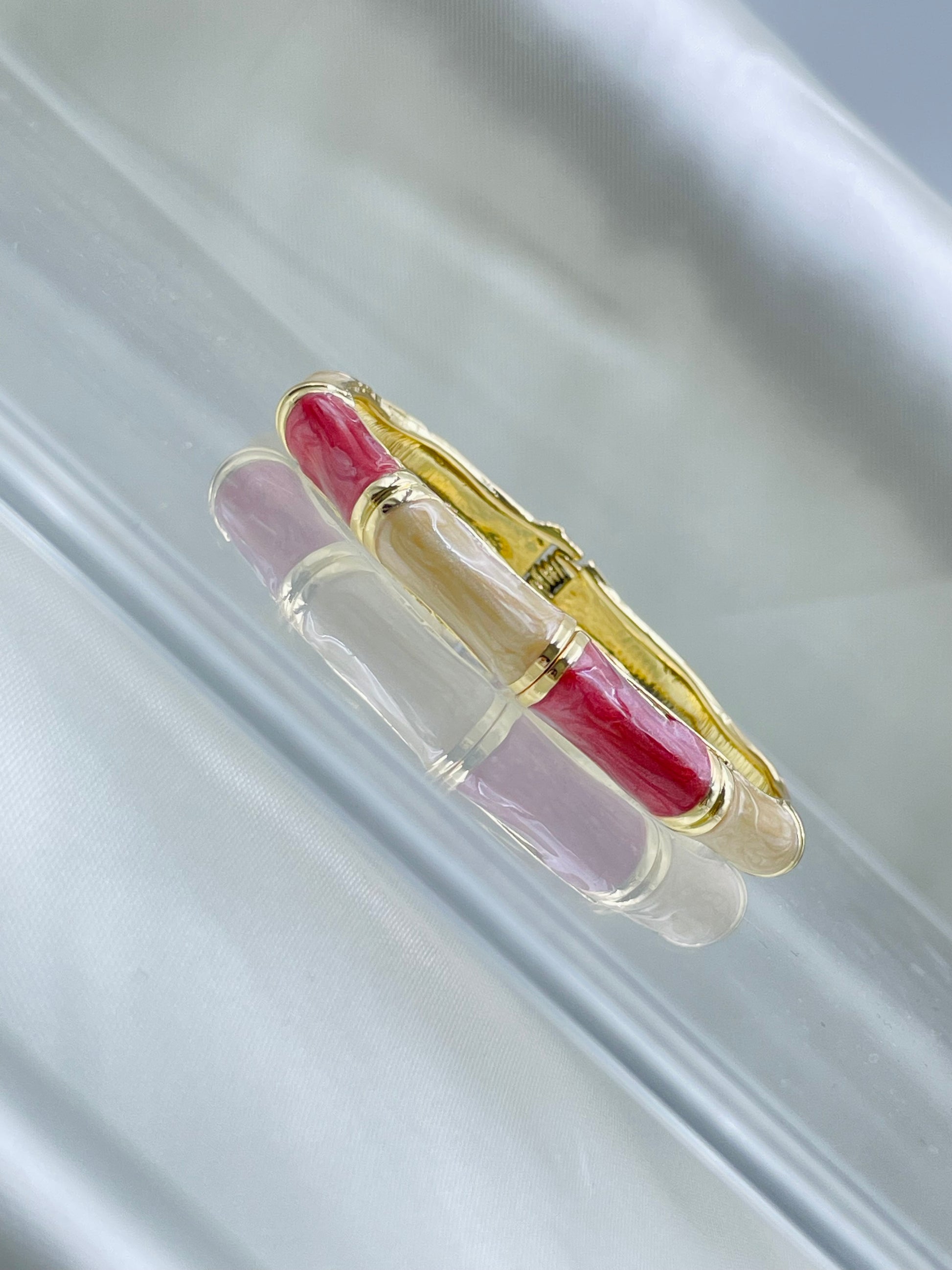 Este brazalete chunky delgado en tono rosa y beige es un accesorio elegante y moderno que complementará cualquier atuendo. Hecho de materiales de alta calidad y diseñado para brindar comodidad y durabilidad, este brazalete es perfecto para cualquier ocasión. Dale un toque de estilo a tu look con este brazalete chunky.