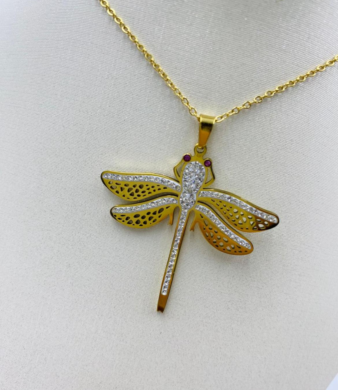 Este collar Rosek cuenta con un dije de libélula grande, lo que le da un toque elegante y femenino. Fabricado con materiales de alta calidad, este collar es perfecto para cualquier ocasión y añade un toque de belleza a cualquier atuendo. ¡Luce hermosa y sofisticada con el Collar Rosek!