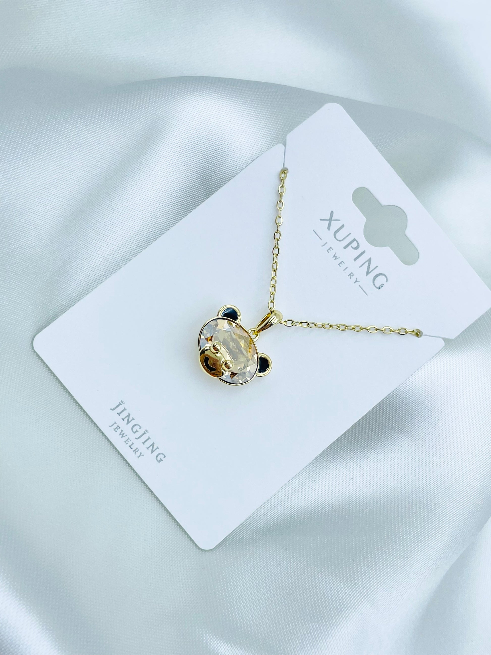 Este collar Xuping Jingjing es una pieza elegante y femenina con un encantador dije de cabeza de oso en cristal Swarovski en un hermoso tono gold. La cadena mide 45cm y se ajusta perfectamente al cuello, agregando un toque de brillo y sofisticación a cualquier atuendo. ¡Haz una declaración con este collar único y exquisito!