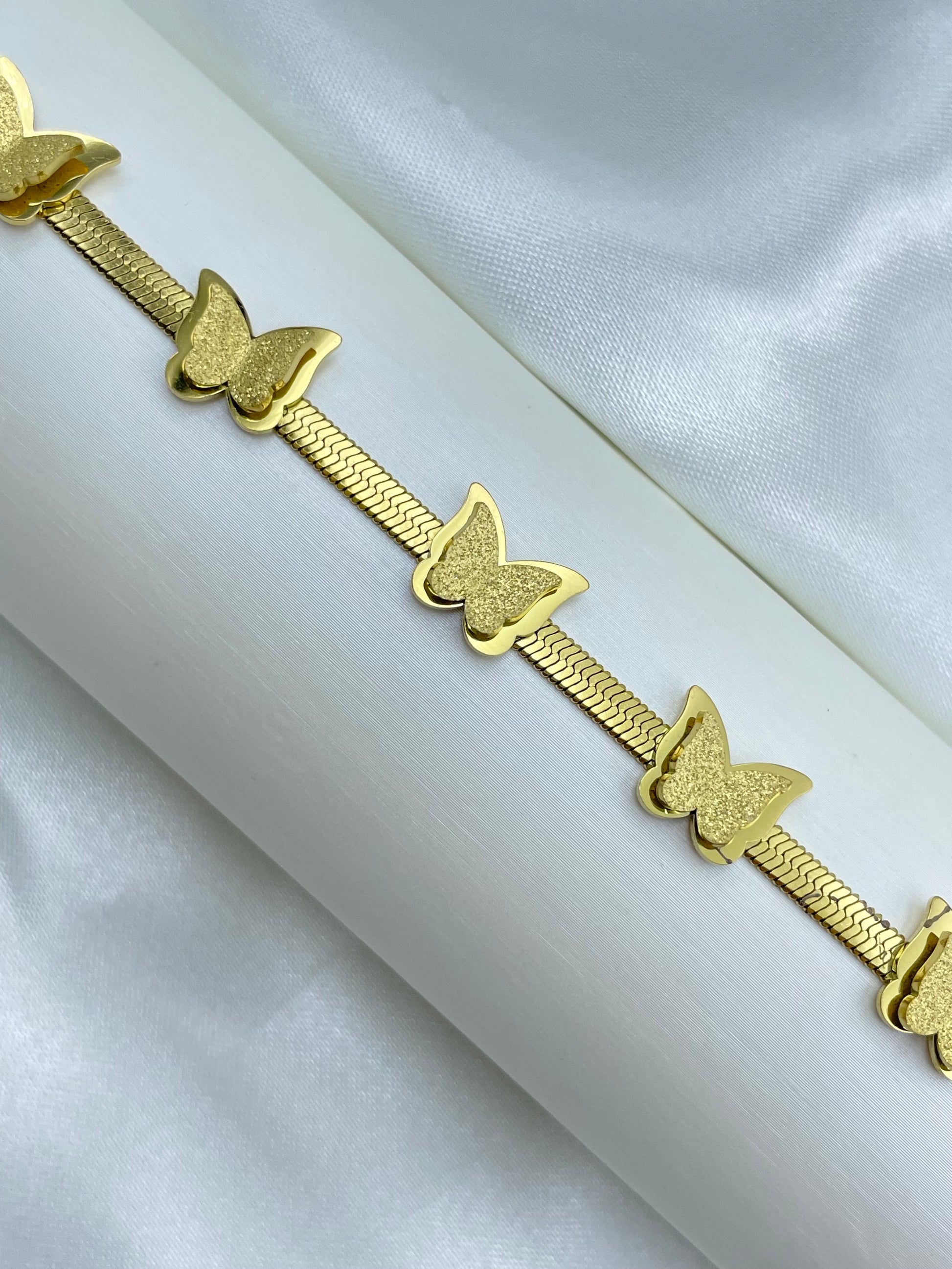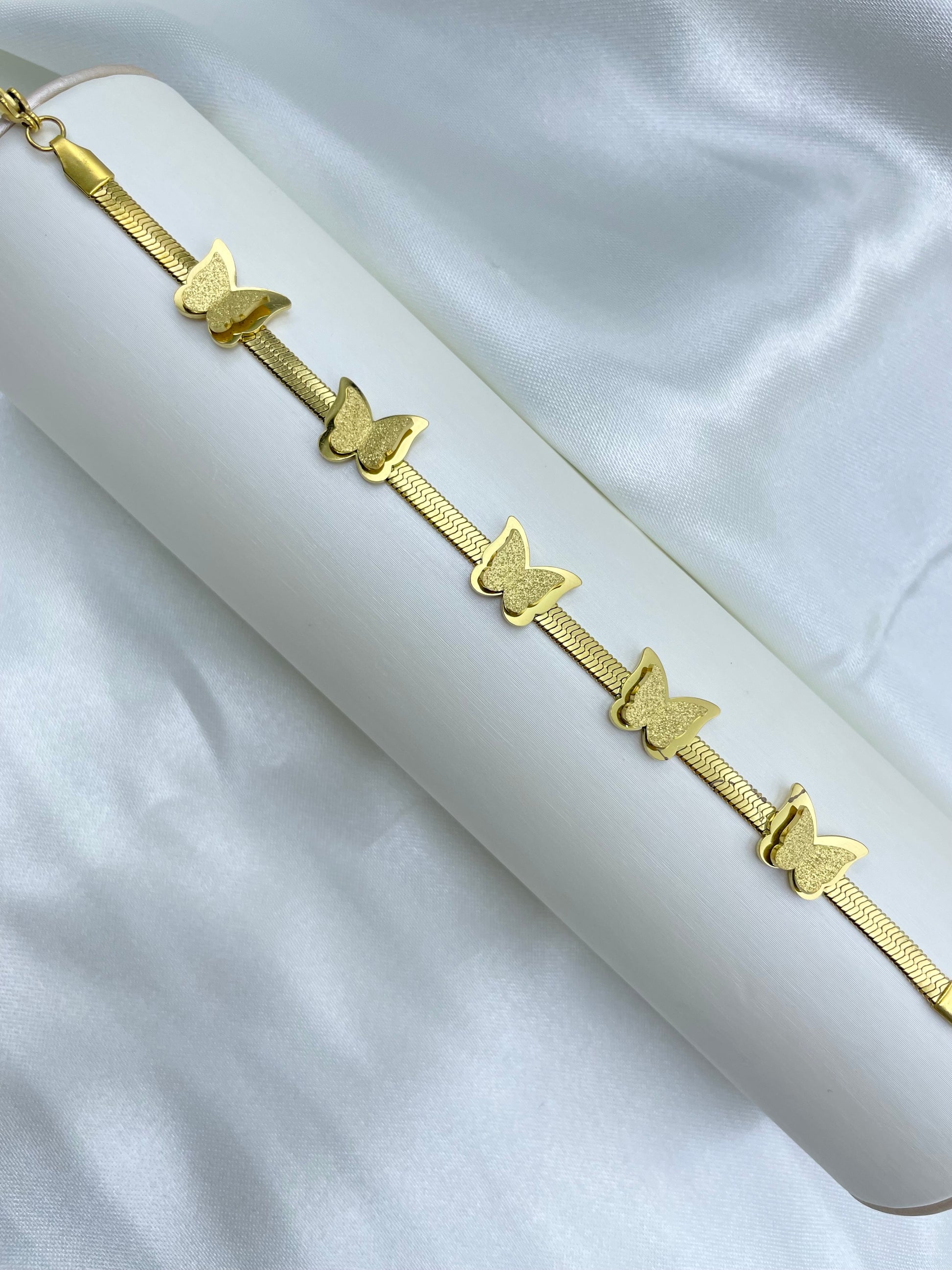 La Pulsera Rosek es un accesorio elegante y duradero hecho de acero inoxidable. Presenta un hermoso diseño con mariposas que le da un toque femenino y único. Perfecta para complementar cualquier atuendo y lucir chic y sofisticada. ¡Consigue la tuya ahora y destaca entre la multitud!