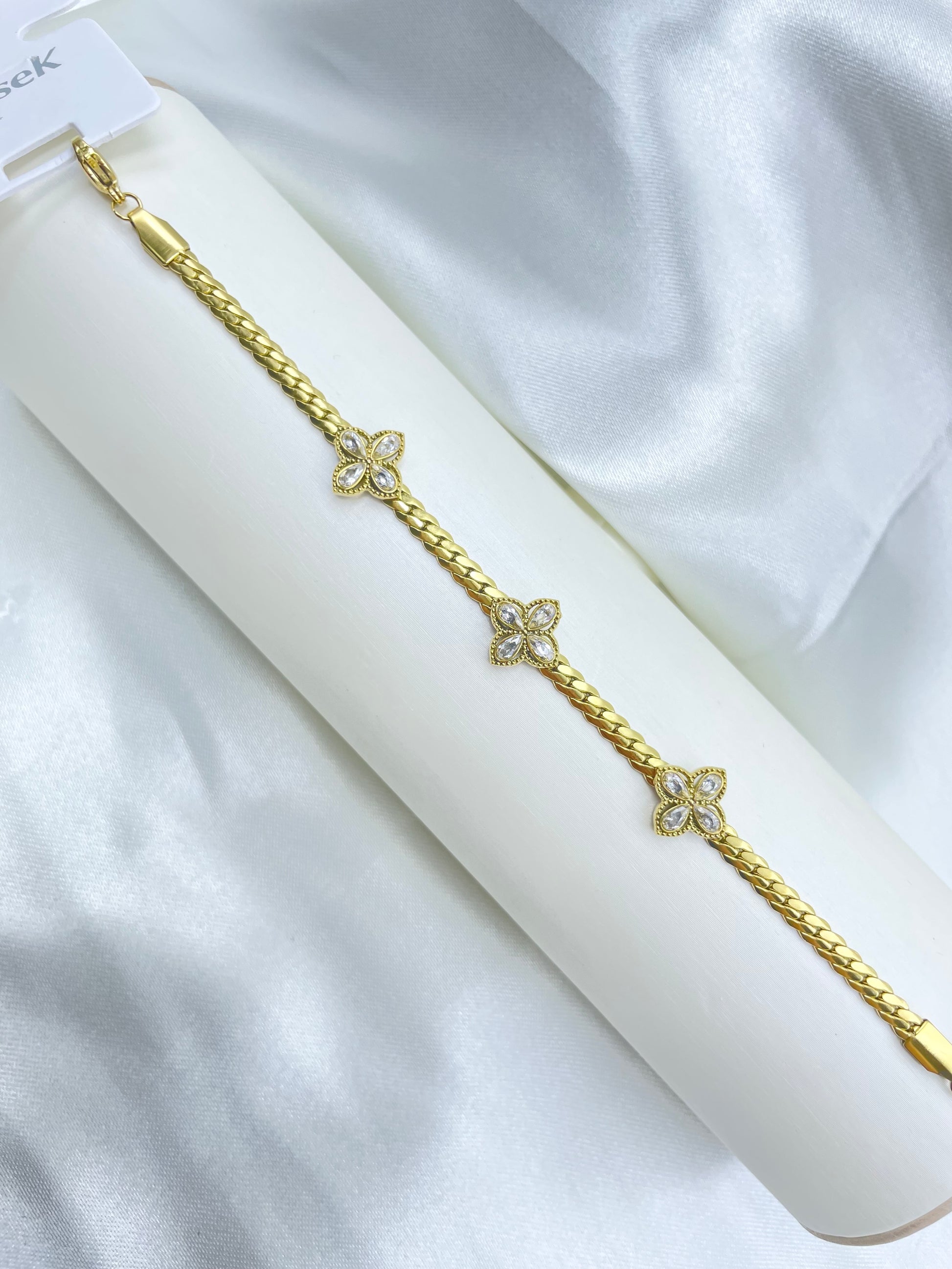 La Pulsera Rosek está fabricada en acero inoxidable y cuenta con un trébol de zirconia en su centro, lo que la convierte en una opción elegante y duradera para tu colección de joyas. Combina perfectamente con cualquier outfit y su diseño único añade un toque de sofisticación a tu estilo.