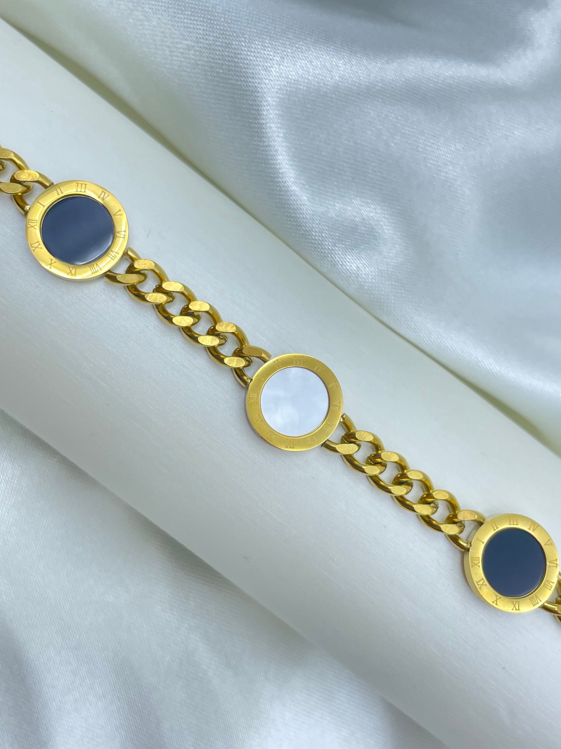 Pulsera de acero inoxidable Rosek, inspirada en el diseño de la prestigiosa marca bvlgari. Hecha con materiales de alta calidad que garantizan durabilidad y estilo. Una pieza única y elegante que complementará tu look y resaltará tu personalidad. ¡Haz una declaración de moda con Rosek!
