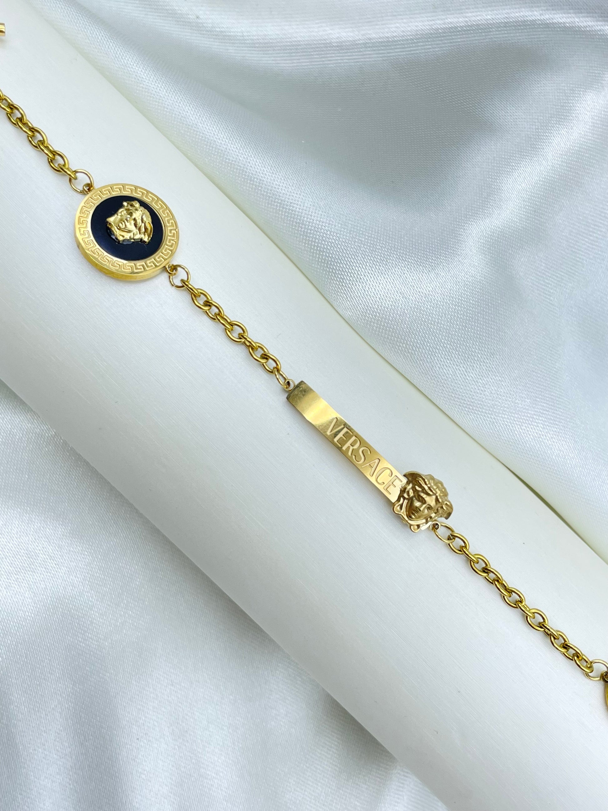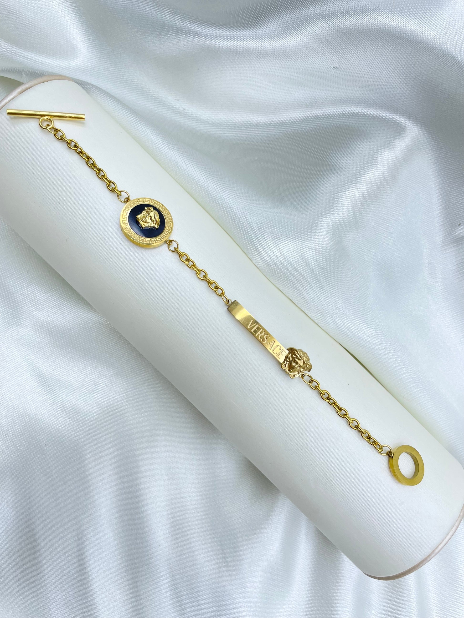 Esta pulsera de acero inoxidable está inspirada en la famosa marca Versace. Diseñada con materiales de alta calidad, esta pulsera añadirá un toque de elegancia y estilo a cualquier atuendo. Perfecta para lucir en cualquier ocasión, esta pulsera es un accesorio imprescindible para aquellos que buscan sofisticación y lujo en su vestuario.