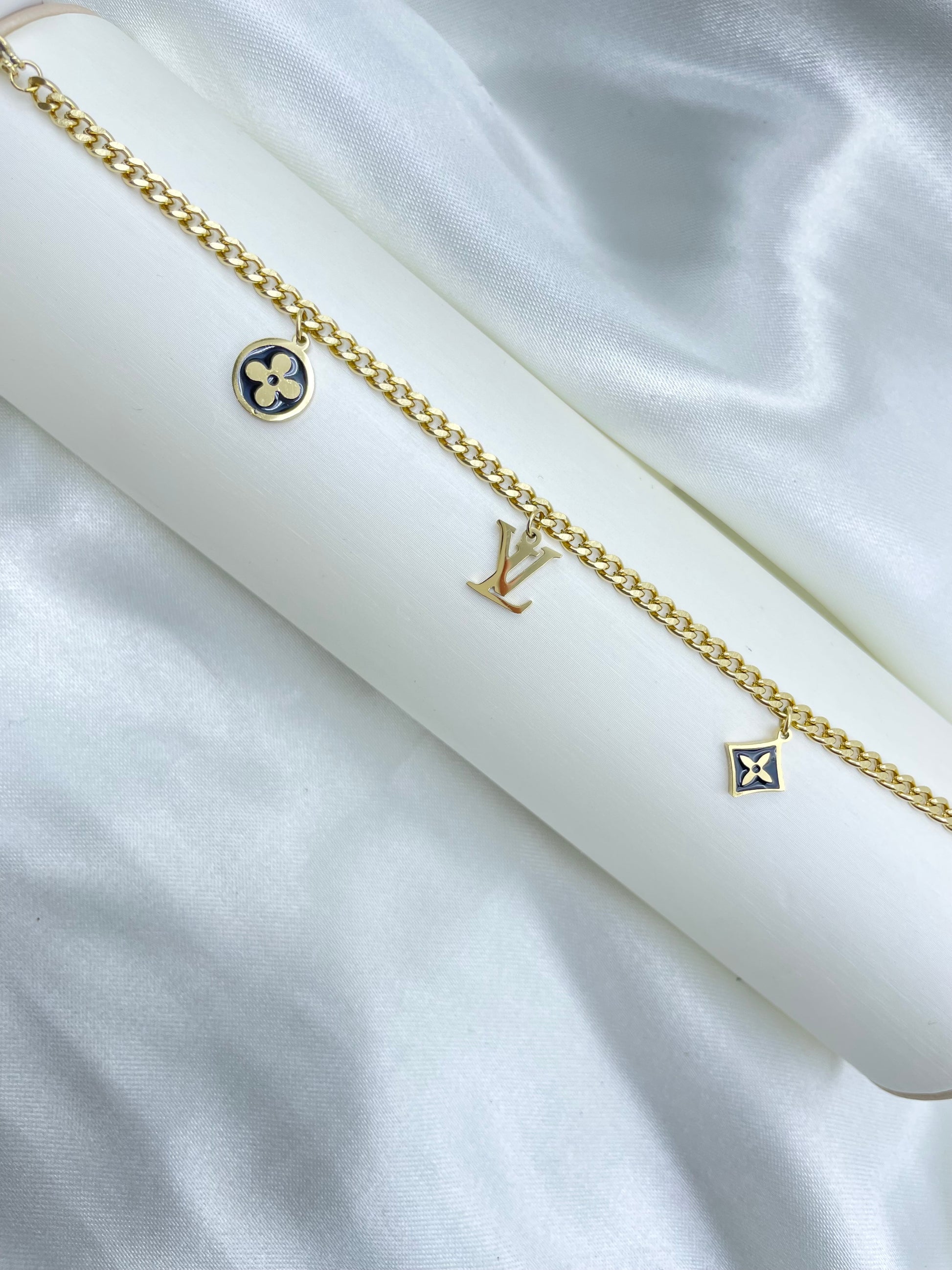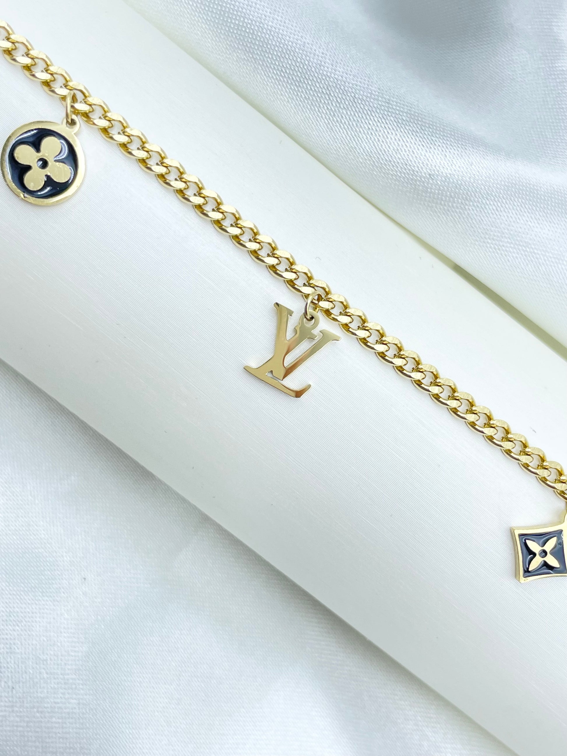 Introduzca su muñeca en la elegante Pulsera Rosek, hecha de acero inoxidable de alta calidad y cuidadosamente inspirada en el emblemático diseño de la marca Louis Vuitton. Añada un toque de lujo a su estilo con esta pulsera única y resistente.
