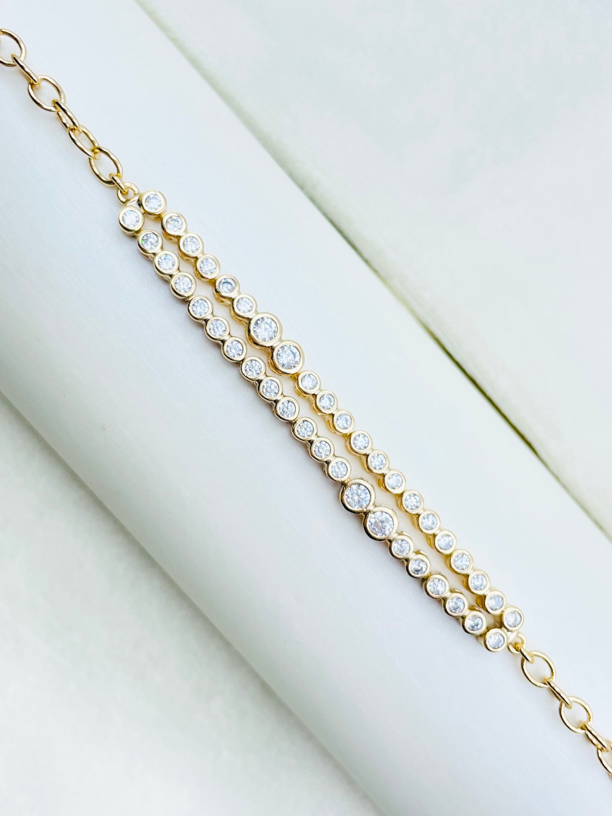 La pulsera Xuping es la combinación perfecta de diseño original y elegancia, gracias a su hermoso diseño lleno de zirconias. Destaca en cualquier ocasión con esta pulsera que te hará sentir sofisticada y única. ¡Haz que tus manos brillen con esta pulsera única!