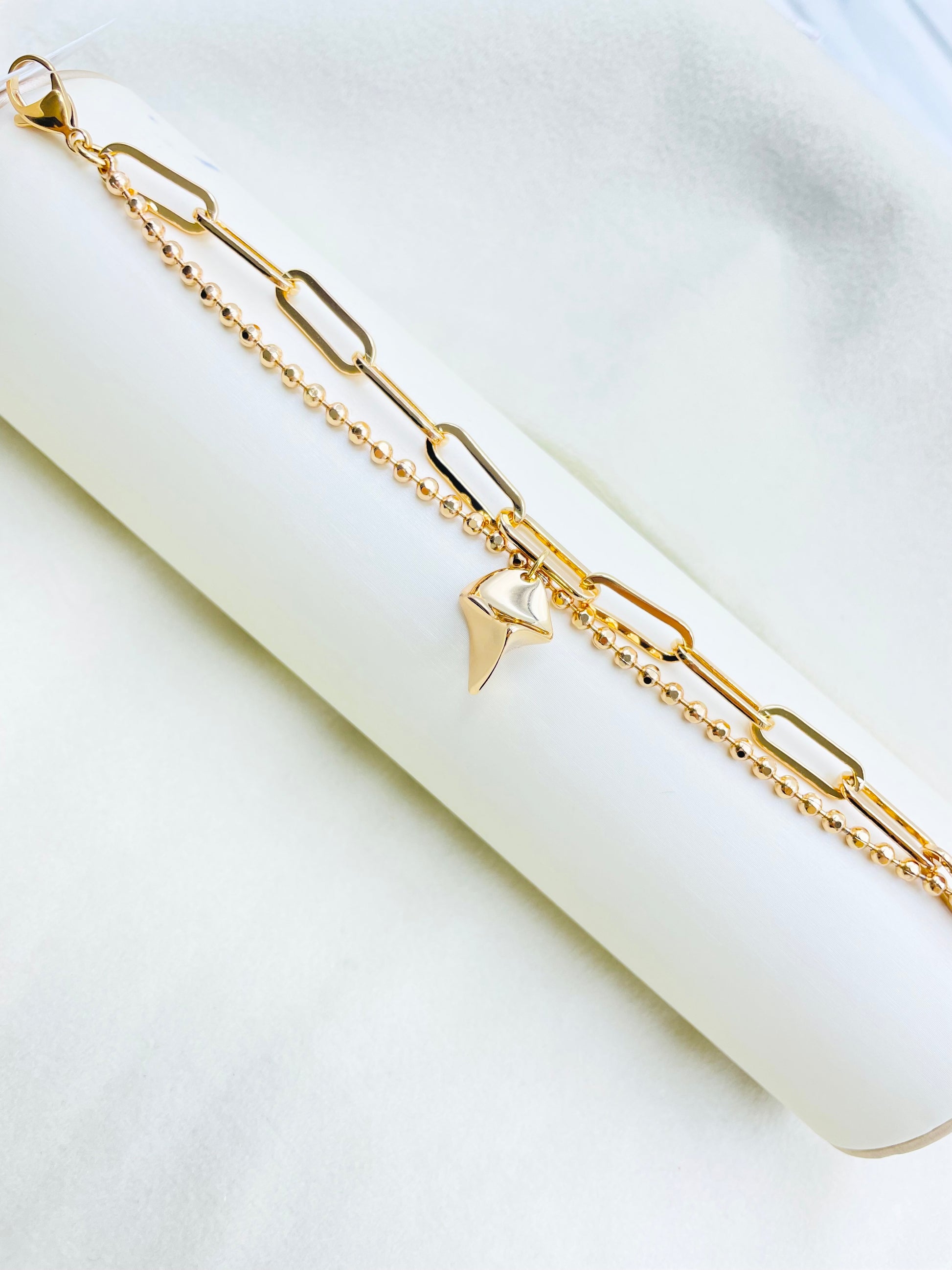 La Pulsera Xuping es la elección perfecta para aquellos que buscan un diseño único y elegante. Con su doble cadena y dije con un diseño raro, esta pulsera combina estilo y originalidad. Añade un toque de sofisticación a tu look con esta hermosa joya.