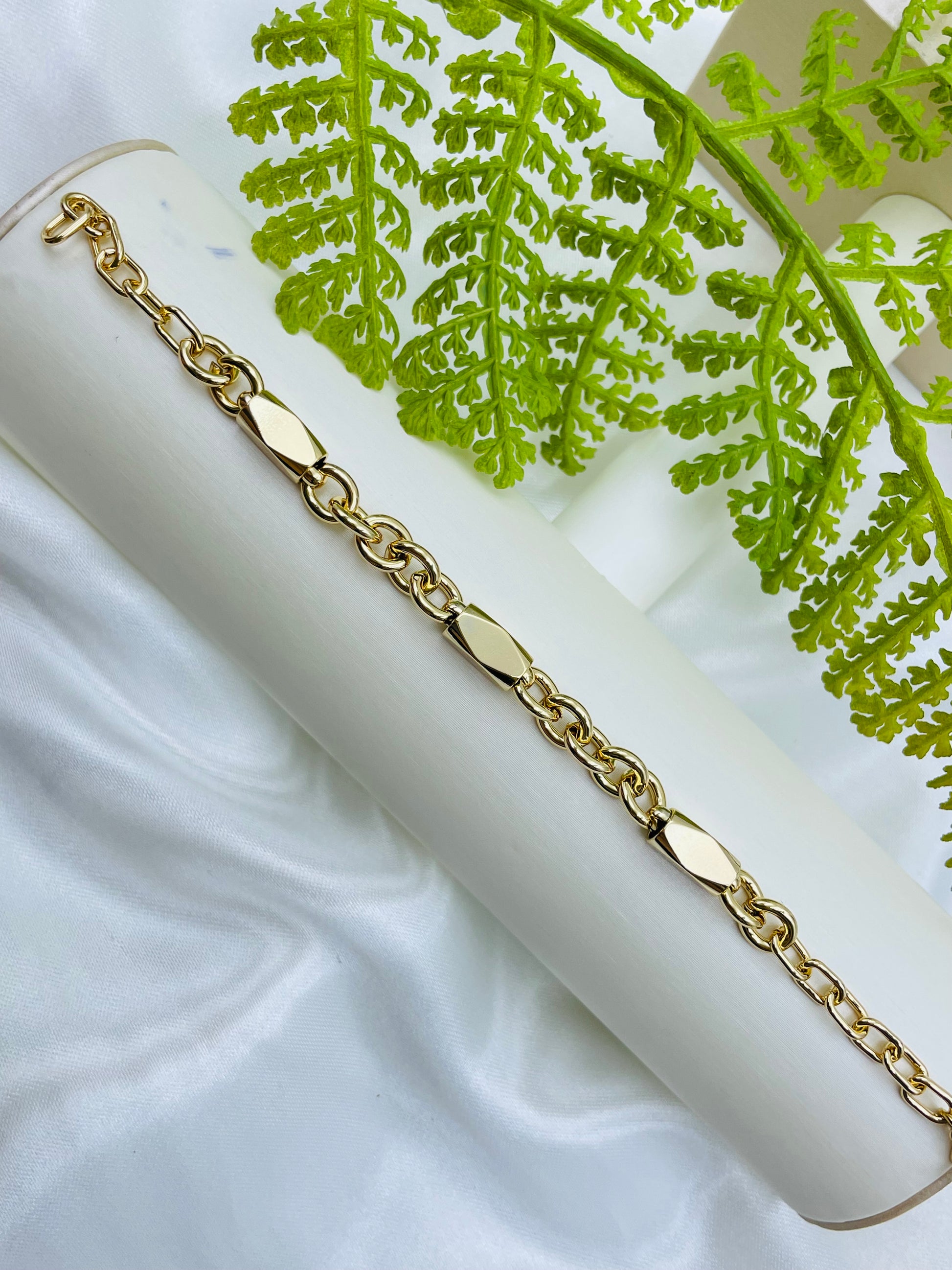 Esta pulsera Xuping de color rosada cuenta con eslabones grandes y tiene un estilo tipo Chuncky. Luce elegante y llamativa, ideal para cualquier ocasión. Se adapta perfectamente a tu muñeca y te hace lucir a la moda y sofisticada. Adquiere esta pulsera y añade un toque de glamour a tu atuendo.