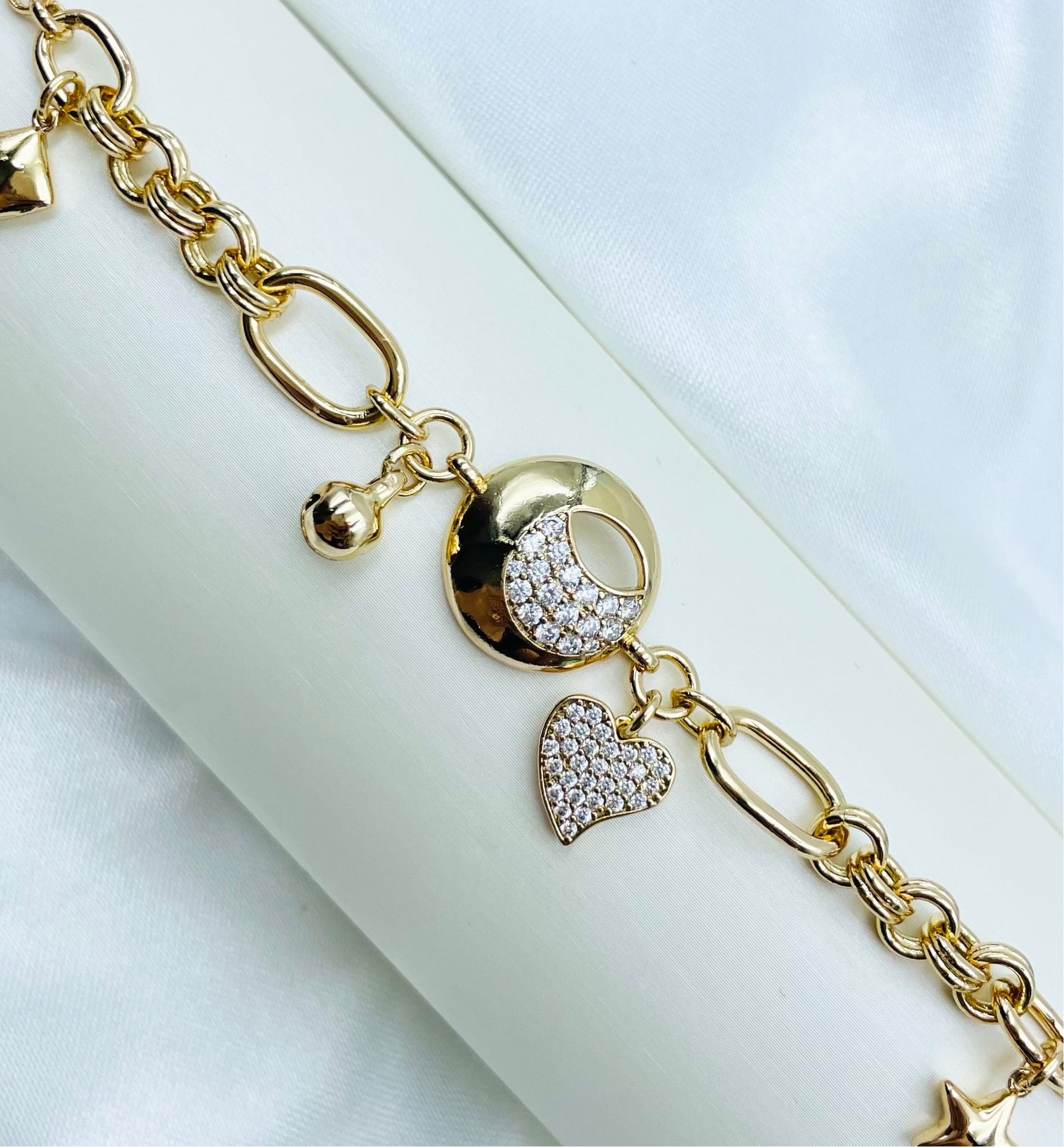 Descubre la elegancia y originalidad de la Pulsera Xuping, con un diseño único y dijes colgando que te harán lucir sofisticada. Hecha con materiales de alta calidad, esta pulsera es perfecta para complementar cualquier atuendo y destacar tu estilo. ¡Hazte notar con la Pulsera Xuping!