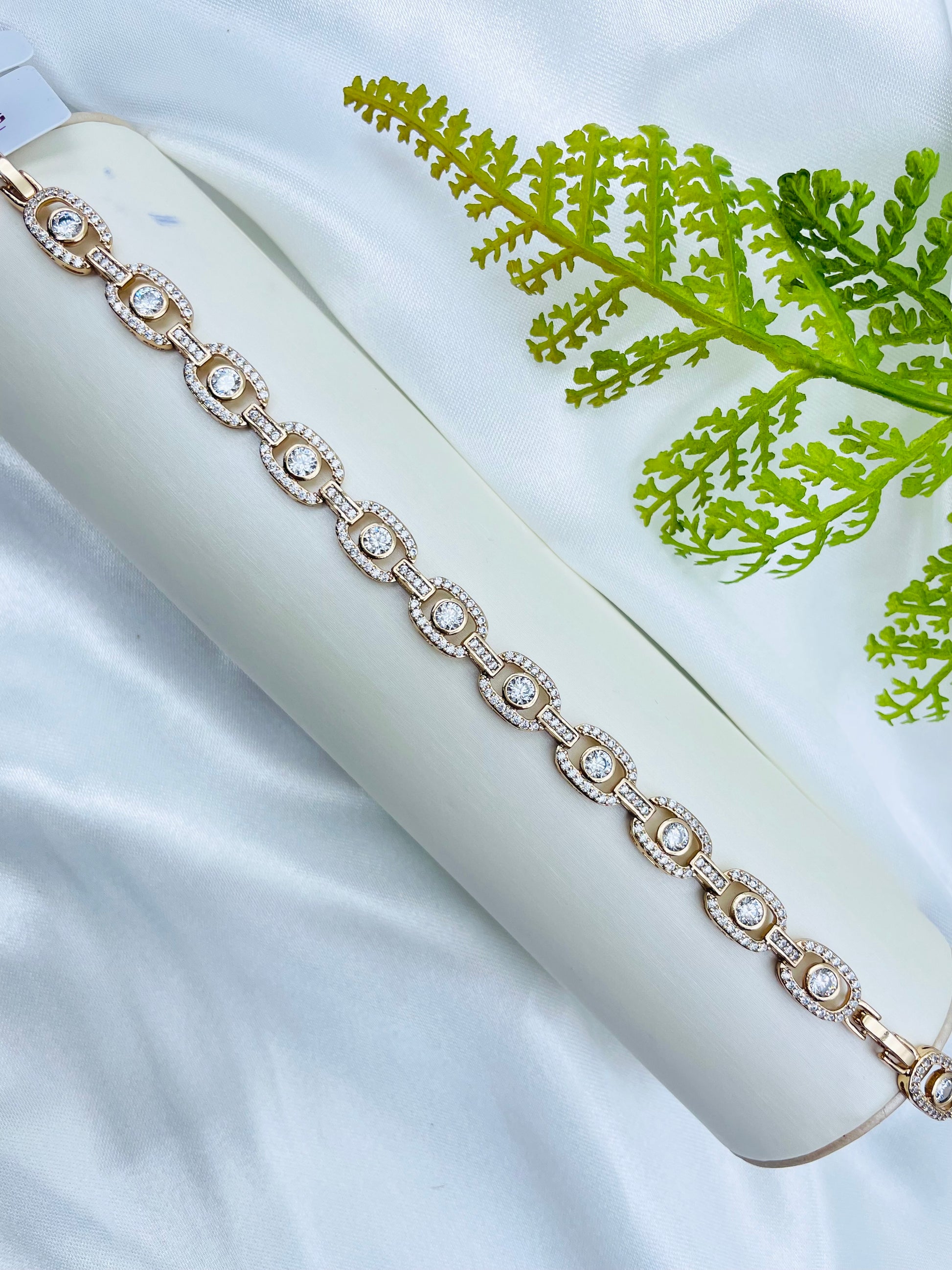 La pulsera Xuping presenta una exquisita combinación de eslabones geométricos alargados, adornados con brillantes zirconias en su centro. Estos detalles le dan un toque de elegancia y sofisticación a esta pulsera, convirtiéndola en el accesorio perfecto para cualquier ocasión.