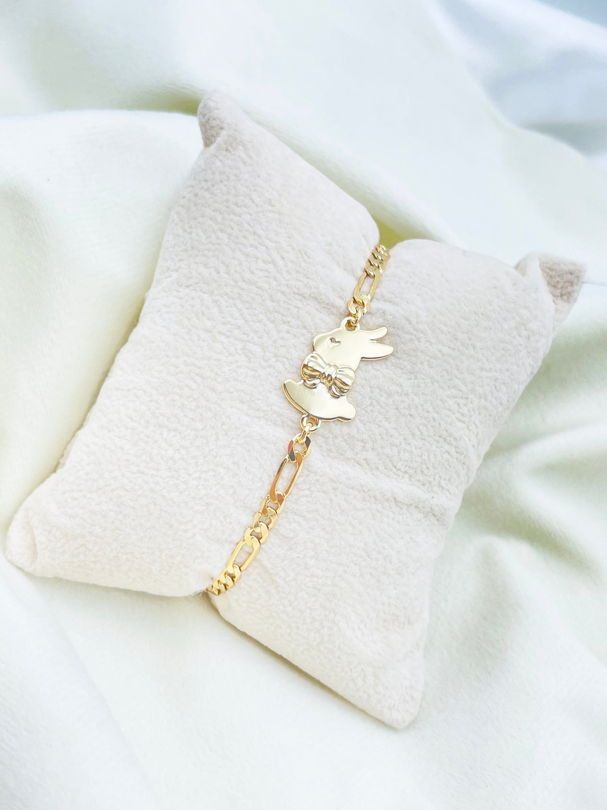 Esta pulsera Xuping presenta una cadena alterna barbada y una placa de conejo en el medio. Hecha con materiales de alta calidad, es perfecta para agregar un toque elegante y encantador a cualquier atuendo. Disfrute de su diseño único y moderno mientras complementa su estilo con esta hermosa pulsera.