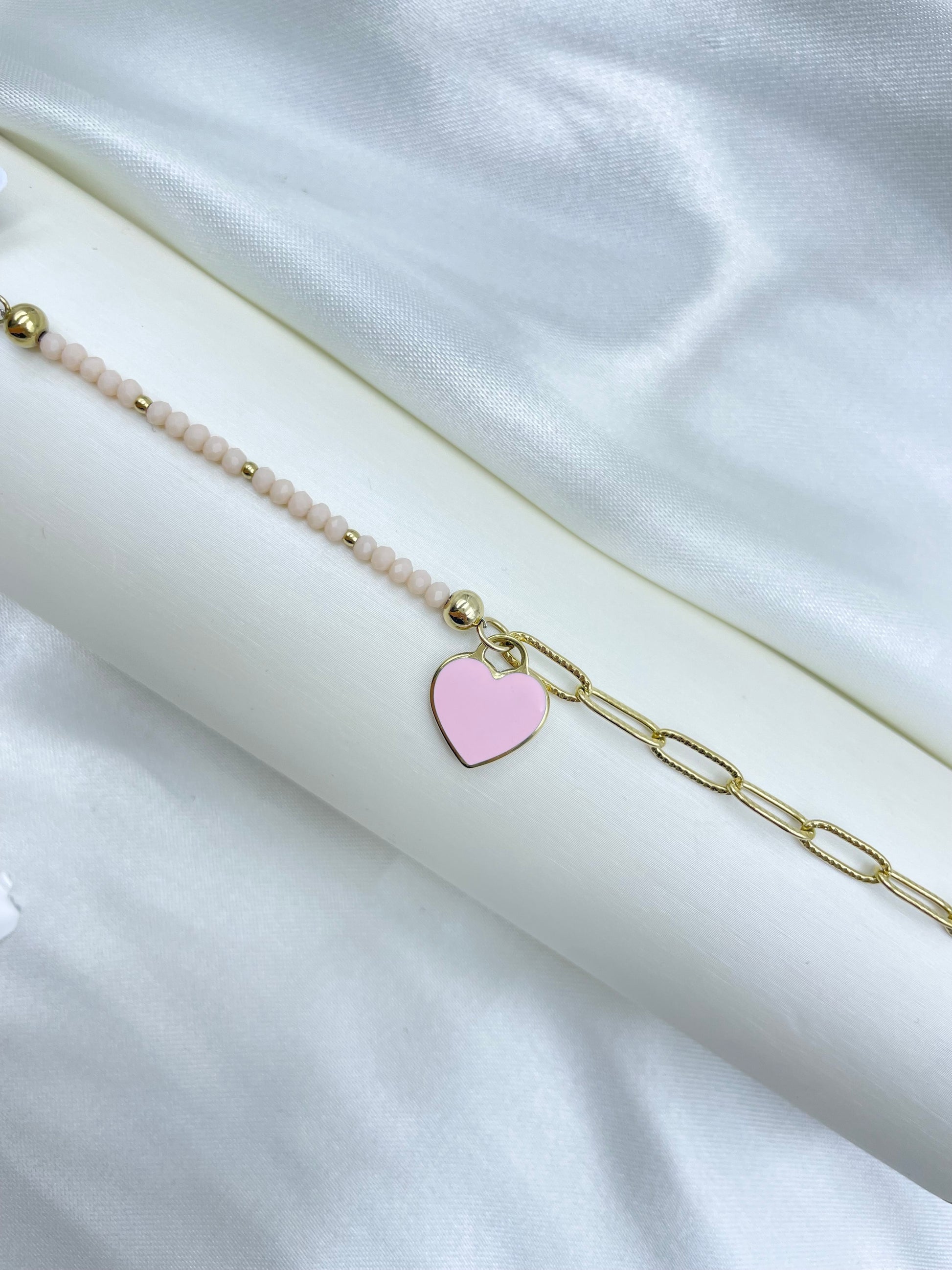 ¡Disfruta de un toque femenino y elegante con la Pulsera Xuping TTM! Diseñada con bolitas rosas en la mitad de la pulsera y un encantador dije de corazón esmaltado en color rosa, esta pulsera es perfecta para cualquier ocasión. Hecha con materiales de alta calidad, ¡te encantará su durabilidad y estilo!