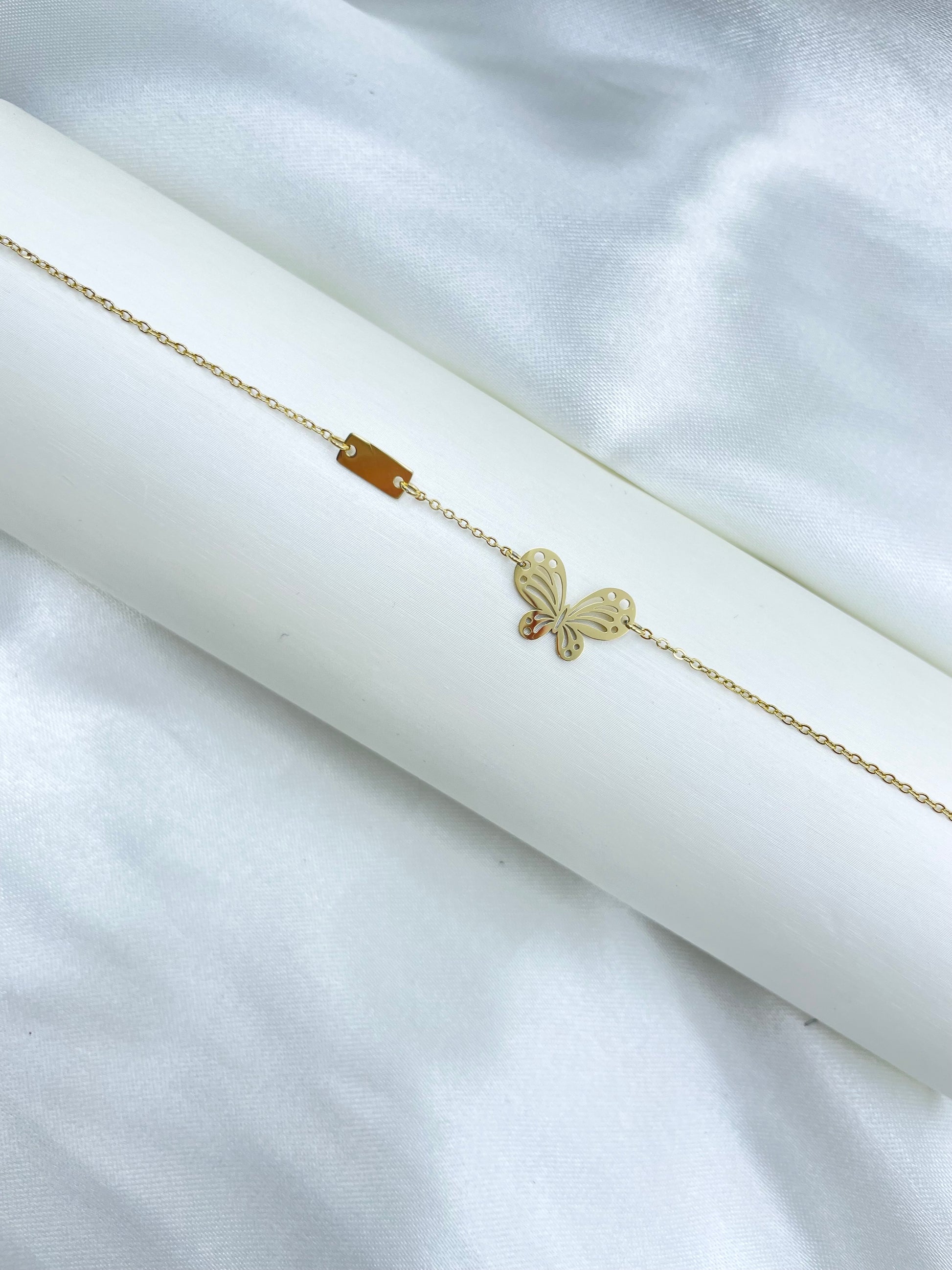 Esta elegante Pulsera Xuping TTM cuenta con una fina cadena y una hermosa mariposa en el centro. Hecha con materiales de alta calidad, esta pulsera añade un toque de sofisticación a cualquier atuendo. Perfecta para ocasiones especiales o para el uso diario, esta pulsera es una adición imprescindible a tu colección de joyas.