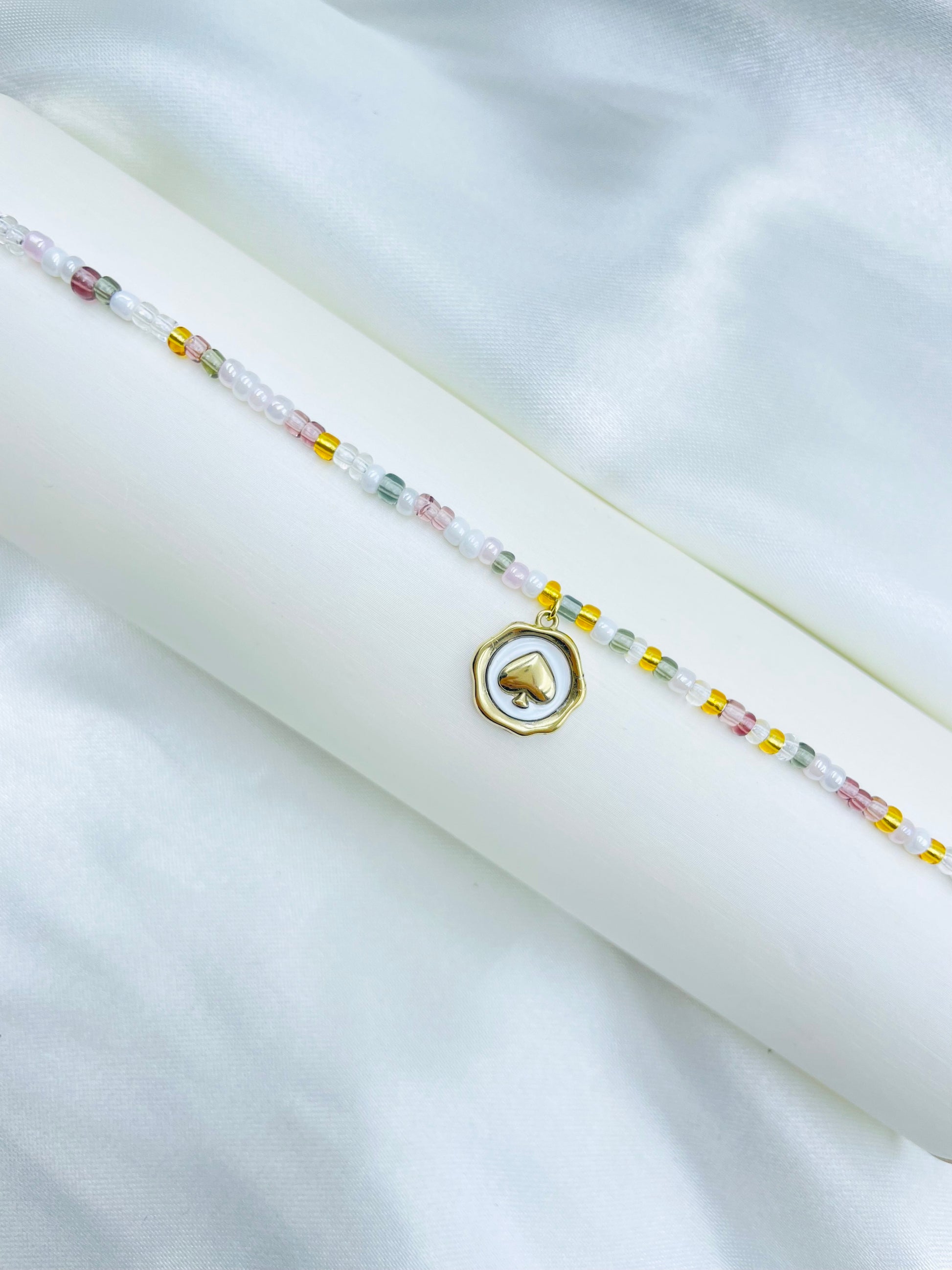 Esta pulsera Xuping TTM es la adición perfecta para tu colección de accesorios. Con bolitas de colores en tonos pastel y un elegante dije en el centro, esta pulsera es una combinación de estilo y delicadeza. Dale un toque de color a tus looks y siéntete única con esta hermosa pulsera. ¡Hazte con ella ahora!