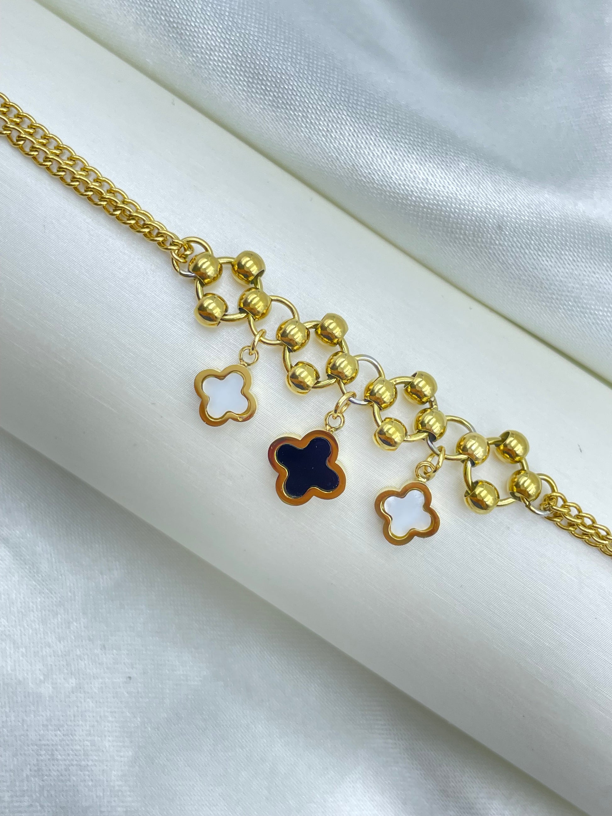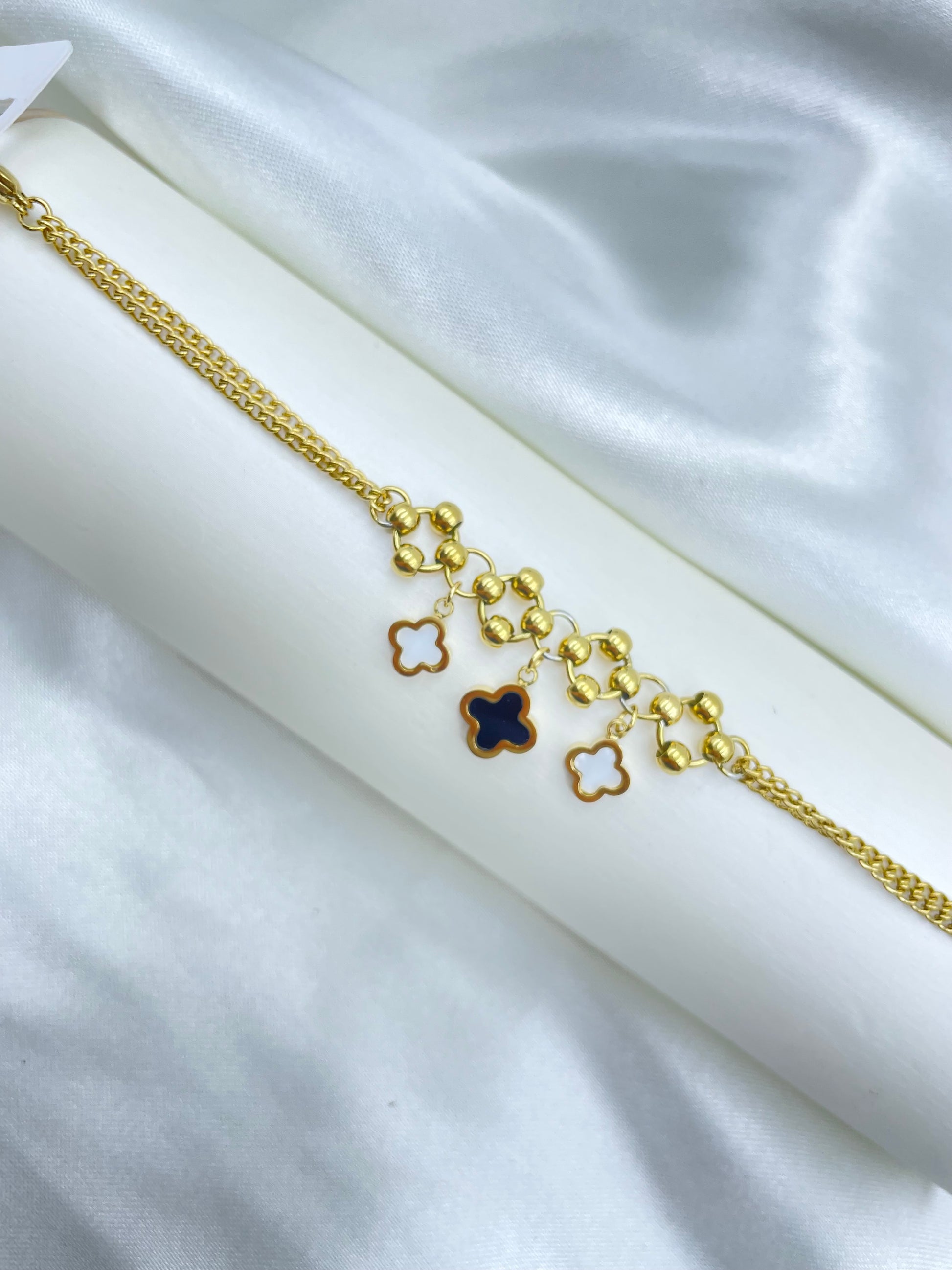 Esta Pulsera Rosek de acero inoxidable está inspirada en van cleef y cuenta con un elegante triple dije. Aporta un toque de glamour y sofisticación a cualquier look. Diseñada con materiales de alta calidad, es una pieza duradera y resistente que puede complementar cualquier estilo con un toque de lujo.
