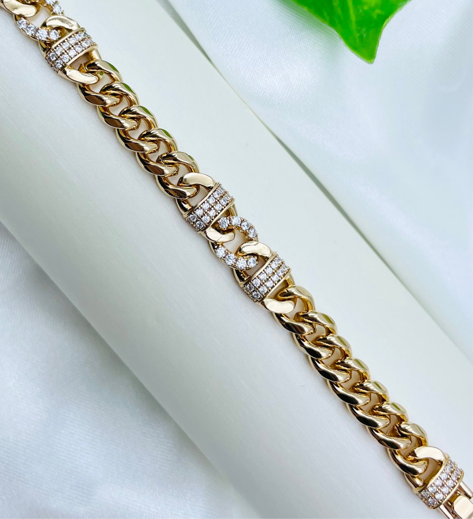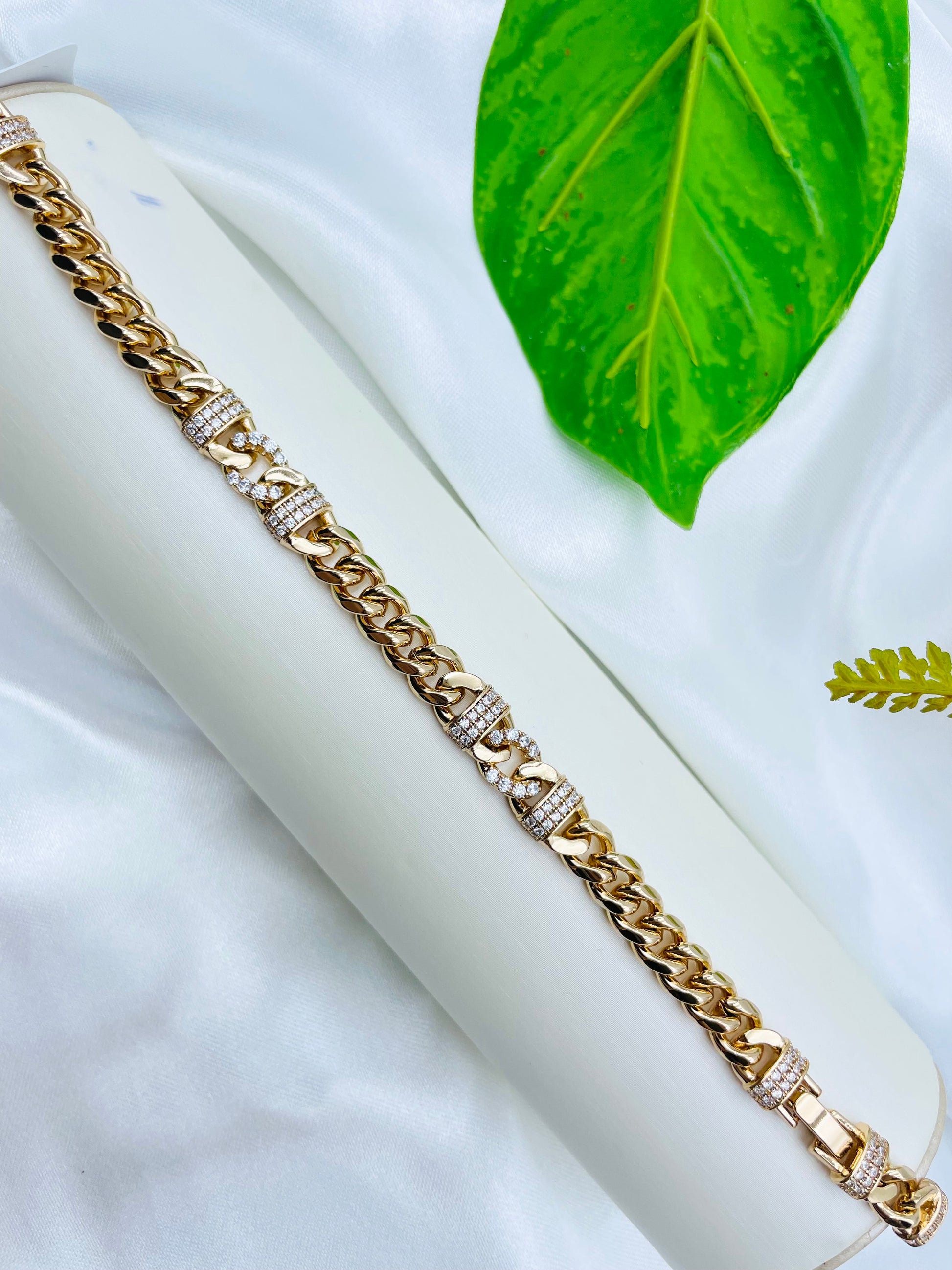 Esta pulsera Xuping cuenta con una cadena y algunos detalles brillantes en sus eslabones, lo que le da un toque elegante y sofisticado. Perfecta para complementar cualquier atuendo y añadir un toque de brillo a tu estilo.