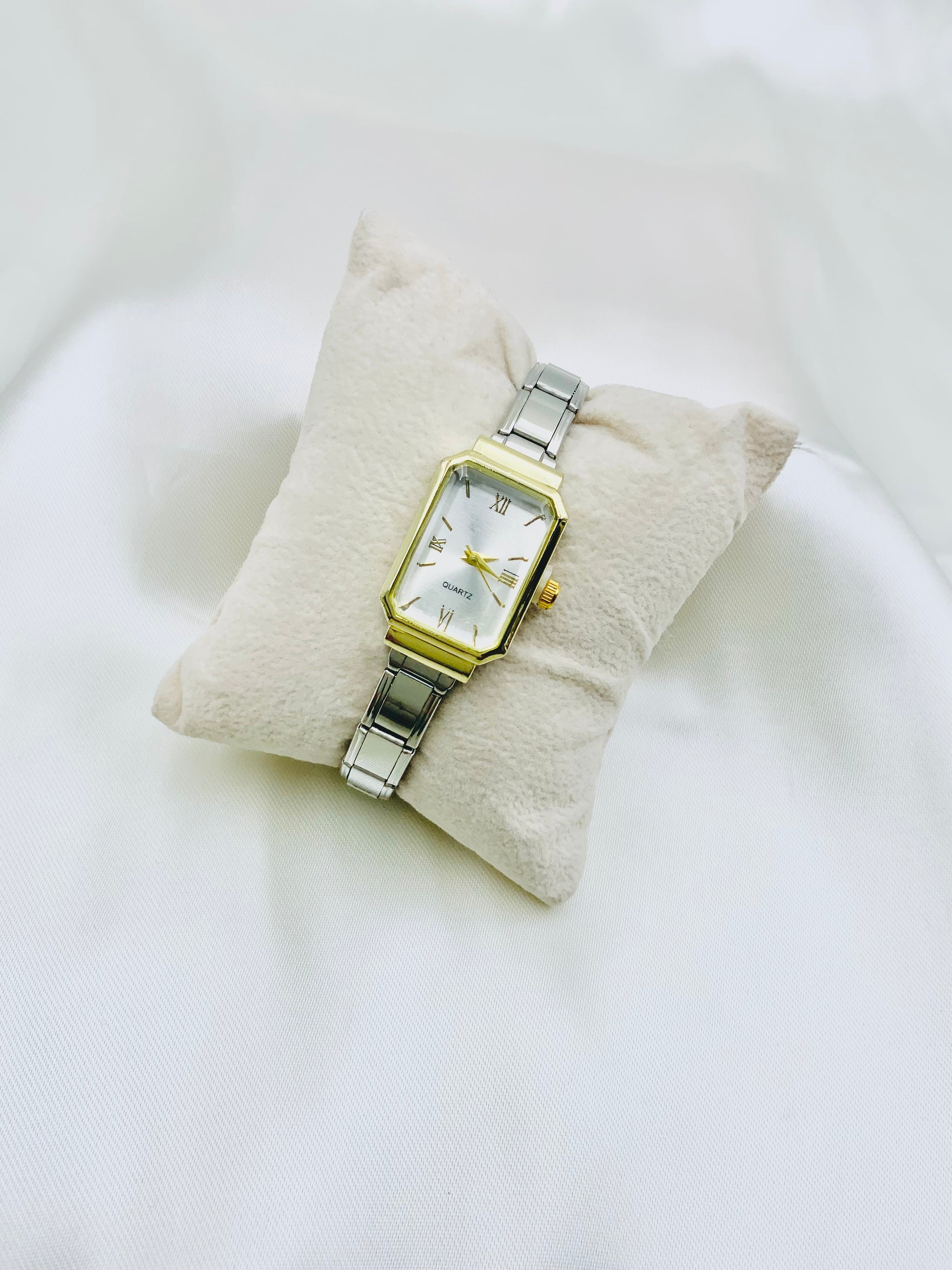 Este reloj italiano de brazalete plateado te ofrece un estilo elegante con un toque de lujo gracias a su marco rectangular dorado. Con un diseño de alta calidad, este reloj es una pieza imprescindible para cualquier ocasión. ¡No pierdas la oportunidad de lucir sofisticado y a la moda con este reloj italiano!