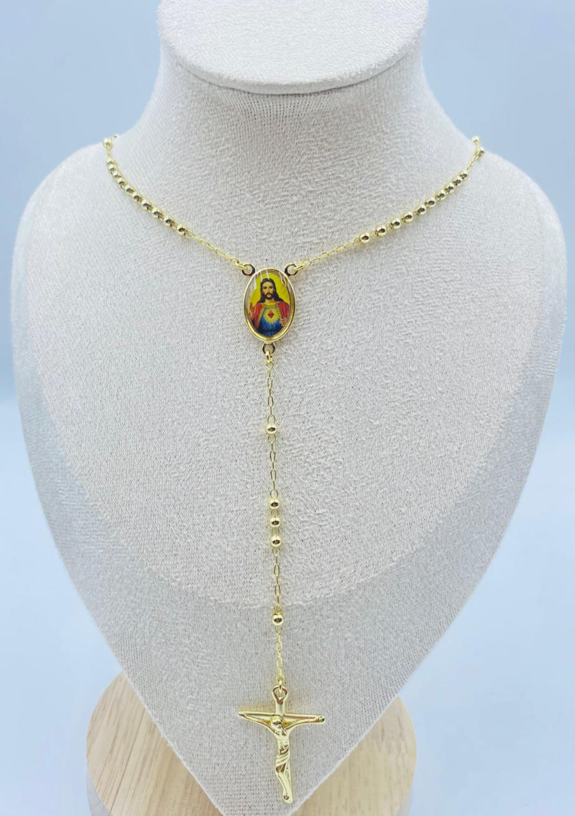 Este rosario está hecho de acero inoxidable resistente y está acabado en un elegante tono dorado. Disfrute de su durabilidad y estilo atemporal mientras se reza con este rosario de alta calidad. Ideal para cualquier devoto católico.